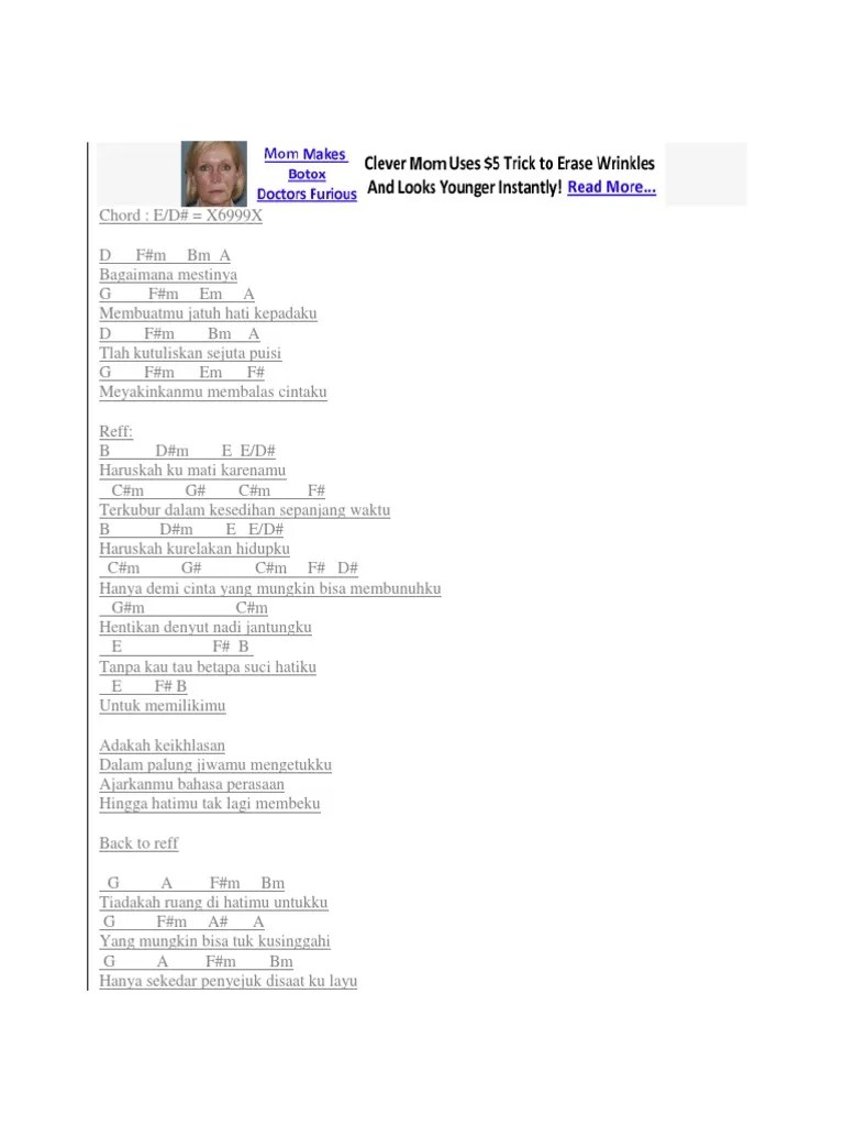 D f#m bm a tlah kutuliskan sejuta puisi. Simak inilah chord gitar dan lirik lagu berjudul 'haruskah ku mati' yang dipopulerkan oleh ada band. G f#m em f# meyakinkanmu membalas cintaku G f#m em a membuatmu jatuh hati kepadaku. D f#m bm a bagaimana mestinya.