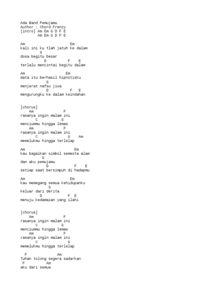 G f#m em a membuatmu jatuh hati kepadaku. D f#m bm a tlah kutuliskan sejuta puisi. G f#m em f# meyakinkanmu membalas cintaku Simak inilah chord gitar dan lirik lagu berjudul 'haruskah ku mati' yang dipopulerkan oleh ada band. D f#m bm a bagaimana mestinya.